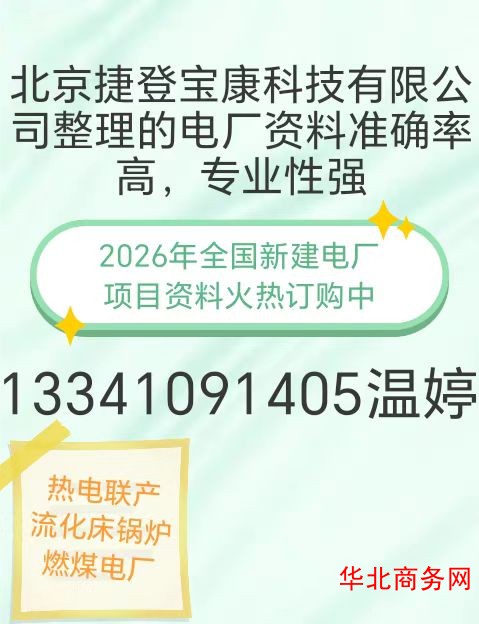 北京捷登宝康科技有限公司整理出《全国电厂项目汇总资料》,本资料适用于电力辅机设备厂商,电力施工企业,电力材料供应商,电力设计院推广业务使用。《全国电厂项目汇总资料》